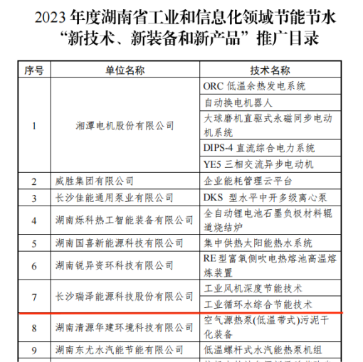 喜報!瑞澤能源兩項技術 入選2023 年度湖南省工信廳節能節水新技術